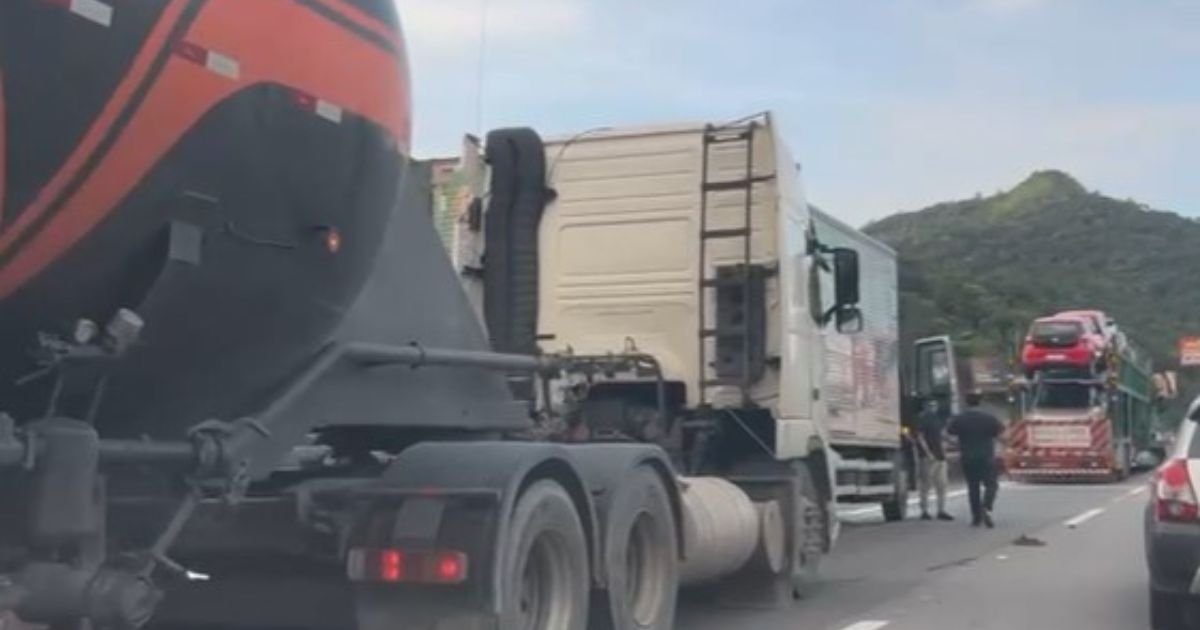 Uma colisão entre duas carretas e um caminhão provocou longas filas na tarde de sexta-feira, 6, na BR-101, em Balneário Camboriú. Apesar dos danos materiais, ninguém se feriu.
