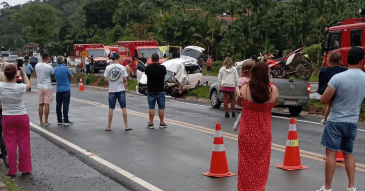 Um grave acidente de trânsito deixou um homem morto e outras cinco pessoas em estado grave na tarde deste domingo (21), na BR-470 em Indaial. Dois carros bateram de frente no quilômetro 75 da rodovia.