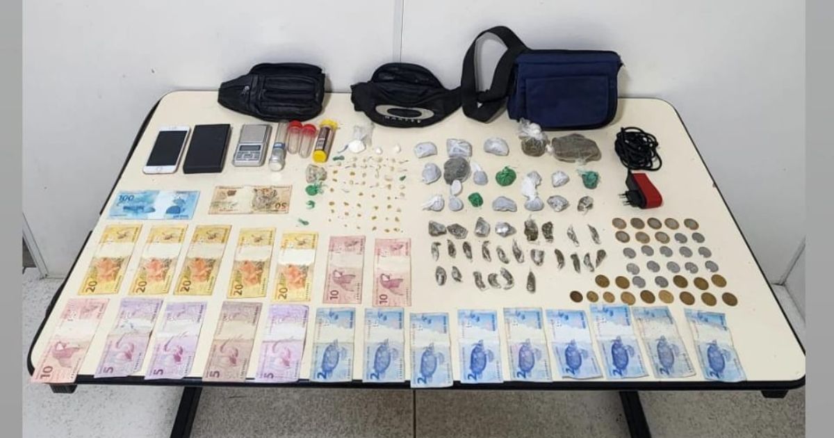 Segundo a Polícia Militar, guarnições realizavam policiamento preventivo na região após denúncias anônimas, quando flagraram um grupo em atividade de tráfico. Três pessoas foram abordadas e, com elas, os policiais encontraram cocaína, crack, maconha e dinheiro.