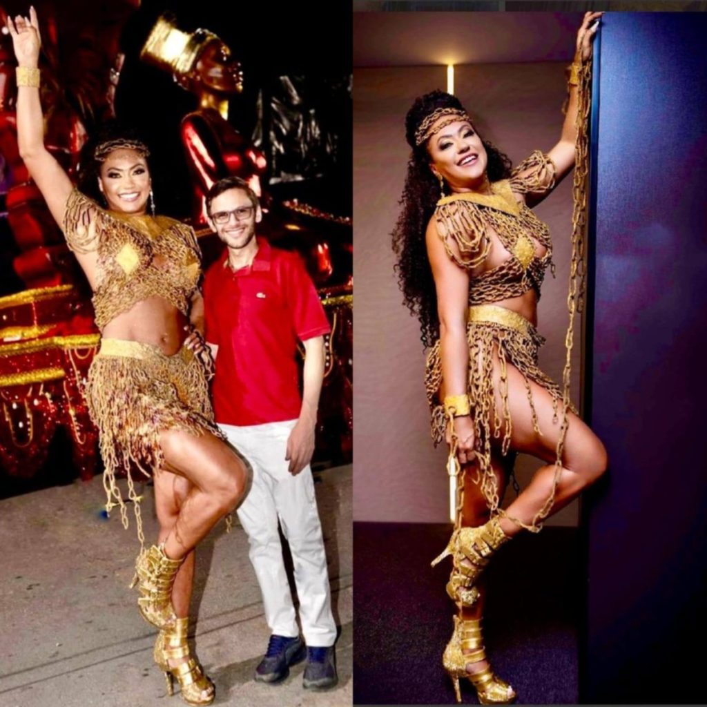 A fantasia de Adriana no desfile será inspirada no trecho do enredo que retrata mulheres que atravessaram o Oceano Atlântico de forma forçada e que, séculos depois, refazem esse percurso de maneira conceitual, espiritual e psíquica, resgatando identidade, memória e poder ancestral. “O enredo me representa por exaltar a força e a ancestralidade da mulher negra, transformando o desfile em um ato de orgulho, identidade e valorização da nossa história”, afirma.