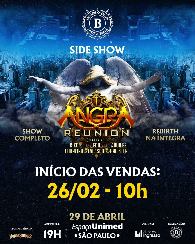 O Angra anuncia um show exclusivo no Espaço Unimed, em São Paulo, no dia 29 de abril de 2026. O evento celebra os 25 anos de Rebirth, álbum que marcou a trajetória da banda no heavy metal. Além disso, reúne pela primeira vez desde 2007 a formação “Nova Era”: Edu Falaschi, Kiko Loureiro, Rafael Bittencourt, Felipe Andreoli e Aquiles Priester.