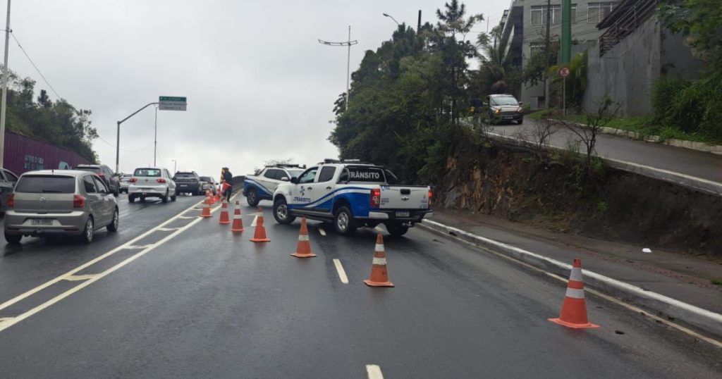 A Avenida Panorâmica, em Balneário Camboriú, foi interditada temporariamente nesta segunda-feira devido ao registro de óleo na pista. Agentes de Trânsito estão no local orientando os motoristas, enquanto a Secretaria de Obras se desloca para realizar a limpeza da via.