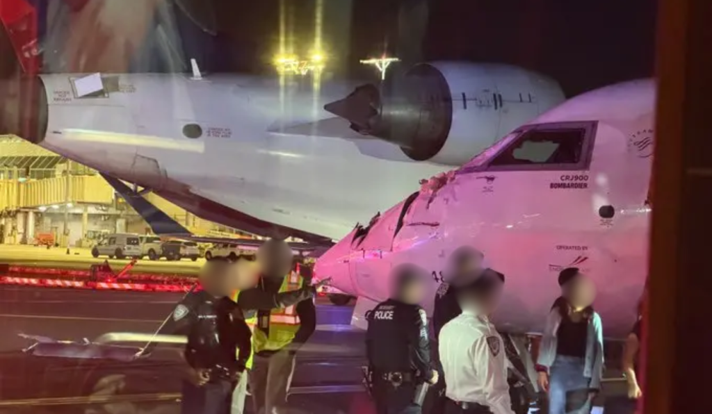 Dois aviões lotados colidiram na pista de pouso do Aeroporto LaGuardia, em Nova York, nos Estados Unidos, na noite desta quarta-feira (1º). Após o acidente, a asa direita e o nariz das aeronaves ficaram destruídos. Uma comissária de bordo sofreu ferimento no joelho e foi hospitalizada.