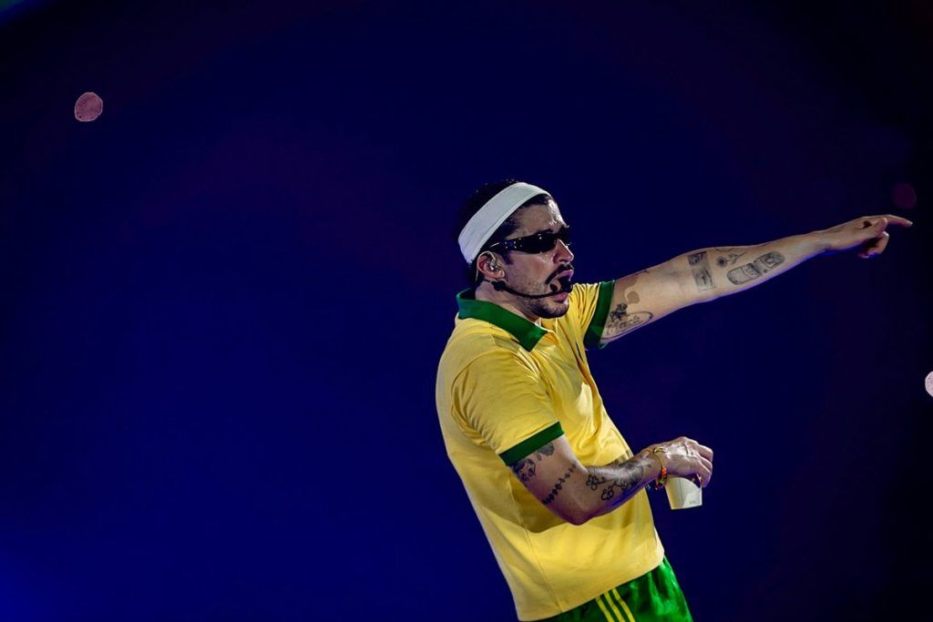 No palco, o artista alternou entre faixas intensas e momentos emocionantes, combinando “BAILE INoLVIDABLE” e “NUEVAYoL” com referências à cultura brasileira, como um solo de “Garota de Ipanema” em cuatro porto-riquenho e citações a “Mas, Que Nada”.