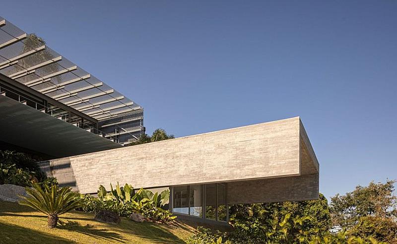 Situada em Florianópolis, Santa Catarina, a Casa Ponte foi construída com o propósito de criar forte conexão com o cenário ao seu redor, e tendo como inspiração a Ponte Hercílio Luz, referência quando o assunto é estrutura metálica na Região Sul do Brasil. “O projeto nasceu da vontade de integrar a arquitetura ao seu entorno, utilizando materiais que dialogam com a paisagem e, ao mesmo tempo, trazem inovação. A residência foi cuidadosamente posicionada na encosta, preservando a vegetação, e utilizando rochas naturais na área da piscina, com o volume principal sendo uma caixa metálica que se projeta por cerca de 10 metros sobre o espelho d’água, transmitindo a sensação de flutuar sobre o oceano”, explica o arquiteto responsável pelo projeto, Carlos Maia, acrescentando que esse balanço só foi possível por conta dos contraventamentos presos diretamente à laje de concreto, garantindo estabilidade e segurança ao conjunto.