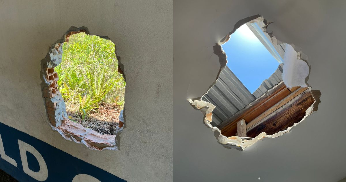 Os suspeitos invadiram a quadra de esportes da CELD, uma praça esportiva que fica ao lado do estabelecimento e quebraram a parede lateral para ter acesso a loja. Em seguida, fizeram um rapel até o telhado da empresa, onde cortaram as telhas e o forro de gesso para entrar no local.