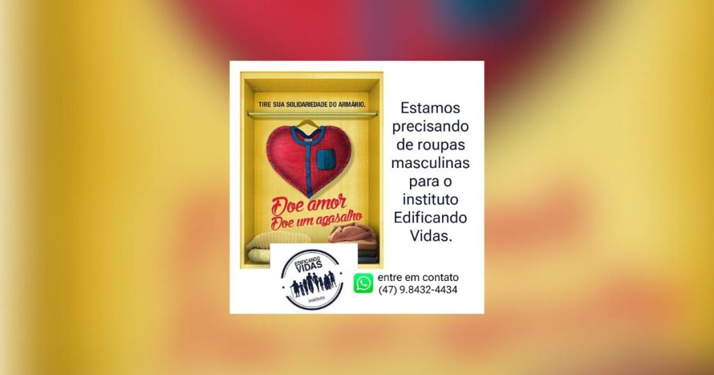 O Instituto Edificando Vidas está realizando uma campanha para a arrecadação de roupas masculinas de inverno. A entidade trabalha com o acolhimento de pessoas em vulnerabilidade social, em Blumenau.