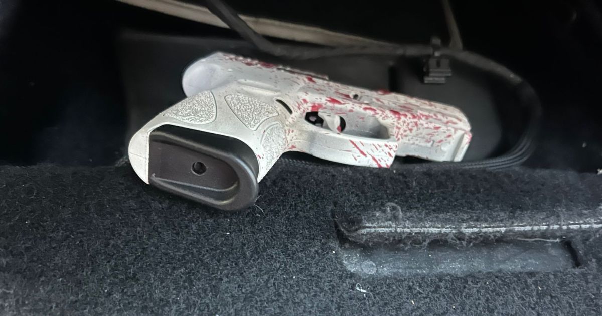 A pistola foi encontrada no veículo de onde o homem saiu, embaixo do banco do passageiro. Em consulta ao sistema, a PM identificou que a arma seria produto de furto/roubo, proveniente do estado do Paraná, em uma ocorrência gerada no mês de janeiro deste ano.