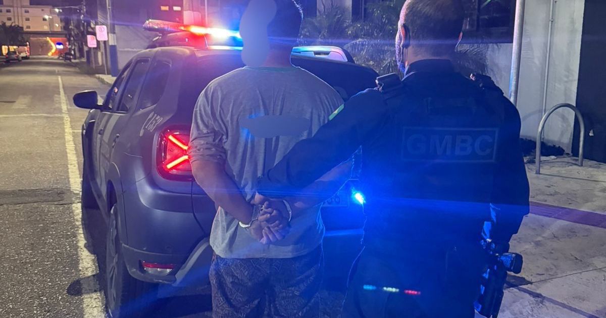 Equipes da Guarda Municipal foram informadas por populares sobre a ocorrência. Após receberem as características do suspeito, os agentes iniciaram as buscas e encontraram o homem na Rua 1.500, próximo à 3ª Avenida. Ele foi abordado vestindo camiseta cinza, bermuda e botas de pedreiro, enquanto conduzia uma bicicleta preta.