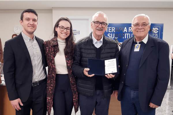 O Hospital de Clínicas de Passo Fundo (HCPF) homenageou na manhã desta quinta-feira (17/07) o deputado federal Pedro Westphalen. O parlamentar foi responsável pelo encaminhamento de verba utilizada na compra de trinta e um equipamentos para hemodiálise.