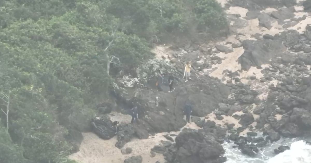 Um vídeo capturado pela Polícia Militar de Balneário Camboriú mostra o momento em que bombeiros resgatam pai e filho.
