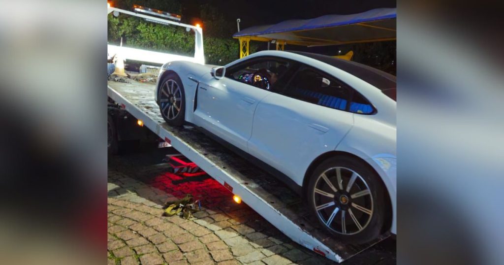 Foi quando o Porsche Taycan apareceu e tentou “furar” a sinalização da viatura com o giroflex acionado. O condutor foi abordado e retido até terminar a manobra. Quando os agentes solicitaram o documento do carro e a habilitação, o motorista arrancou, mas foi parado por outro agente alguns metros à frente.