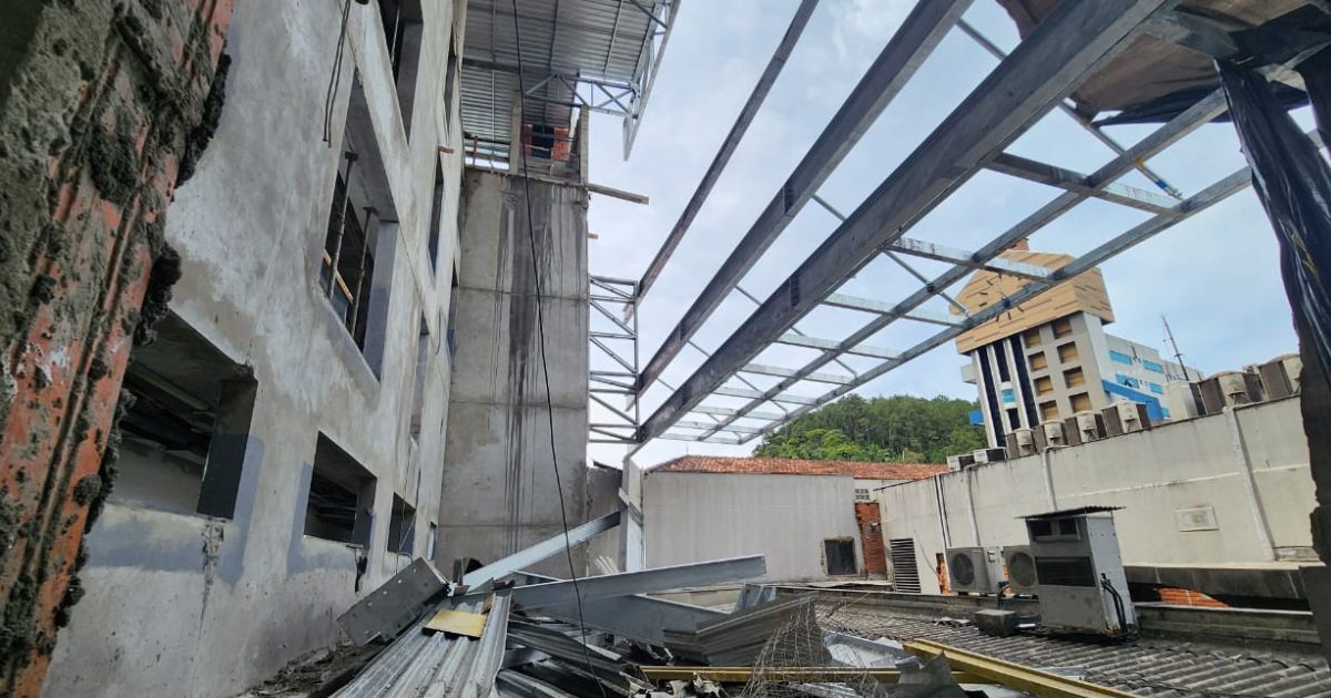 O Corpo de Bombeiros Militar de Santa Catarina atendeu, na manhã desta quarta-feira (5), a um colapso estrutural em uma obra anexa a um prédio de seis pavimentos na Rua Sete de Setembro, esquina com a Rua Presidente John Kennedy, no Centro de Blumenau.