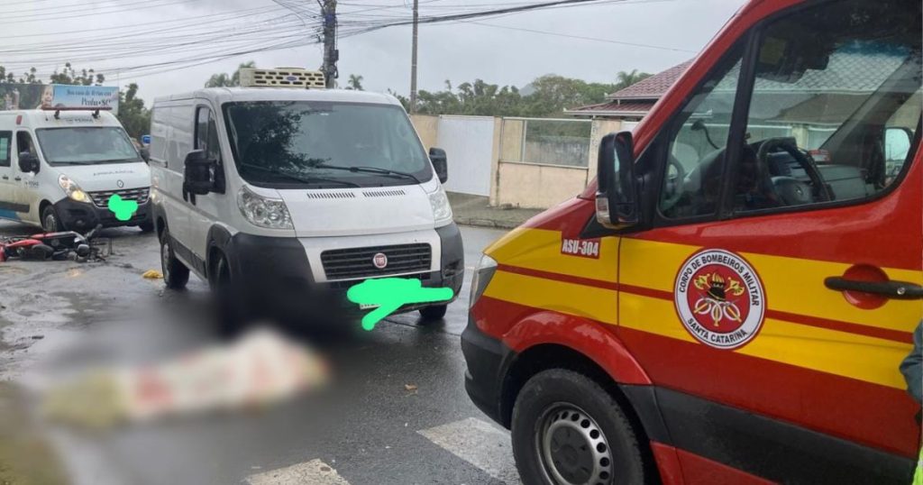 Uma van colidiu com um ciclomotor elétrico, resultando na morte da condutora do veículo de duas rodas, na manhã deste sábado,14, em Penha.