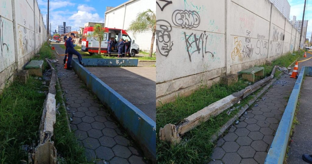 Quando as equipes do Corpo de Bombeiros chegaram ao local, a vítima já estava sendo atendida por socorristas do Samu. Segundo informações repassadas aos bombeiros, o poste caiu sobre a perna do homem, que permaneceu consciente durante o atendimento.
