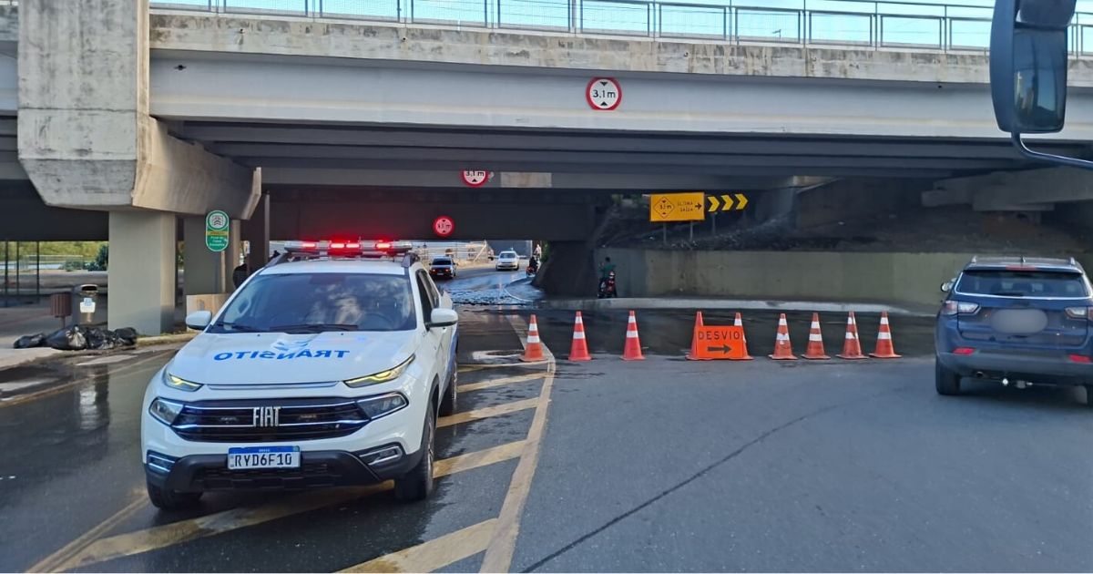 Por volta das 18h, o nível de água já havia baixado, mas ainda foi necessário desviar o fluxo. Agentes de trânsito estão orientando o fluxo de veículos no desvio para a Marginal Leste.