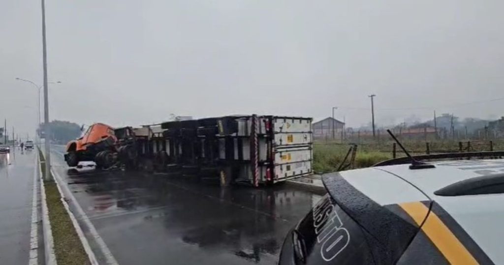 A Codetran informou ainda que a carreta transportava uma carga de 32 toneladas.