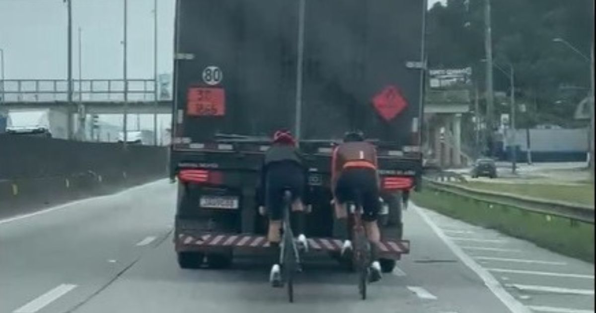 Um vídeo registrado na BR-101, em Itajaí, mostra dois ciclistas trafegando logo atrás de um caminhão, em situação considerada de alto risco. As imagens foram enviadas por um ouvinte à Rádio Menina.