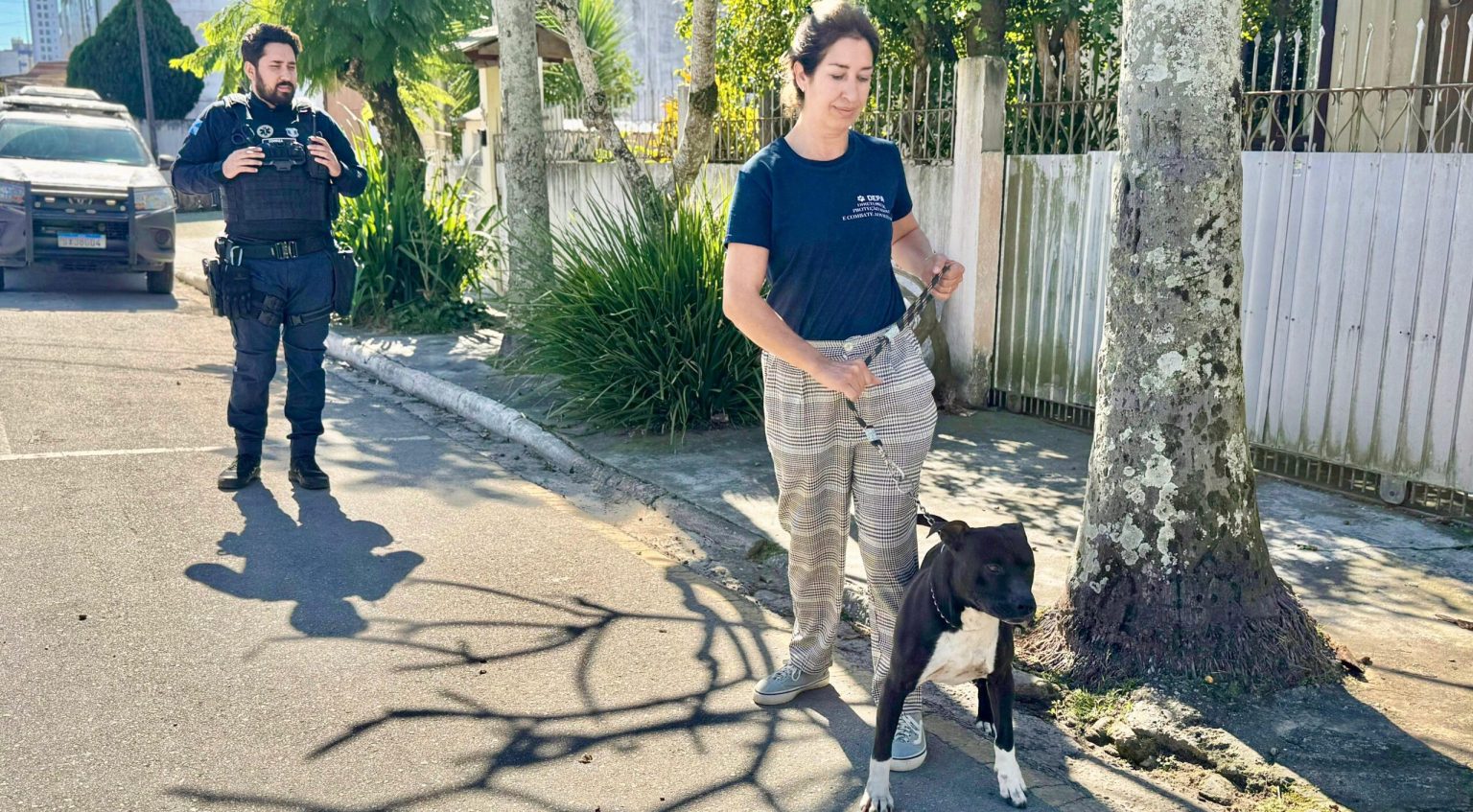 Um pitbull foi resgatado em Balneário Camboriú, após ser abandonado em uma residência no Bairro Vila Real. A ação foi realizada pela Diretoria de Combate aos Maus-Tratos Contra Animais (DCMCA) em parceria com a Guarda Municipal Ambiental.